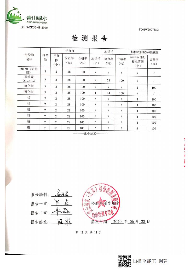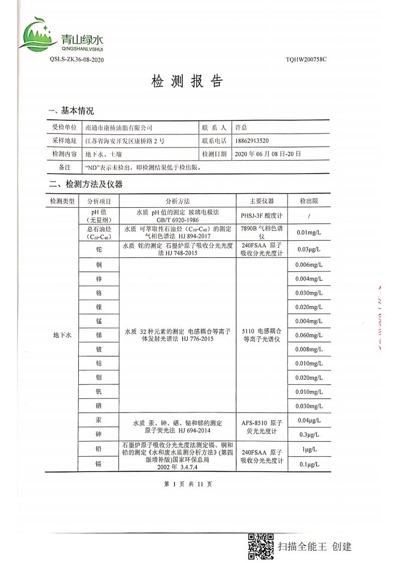 南通市康橋油脂有限公司2020土壤檢測(cè)